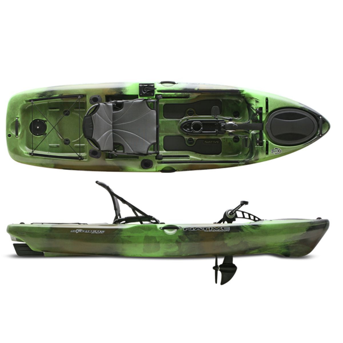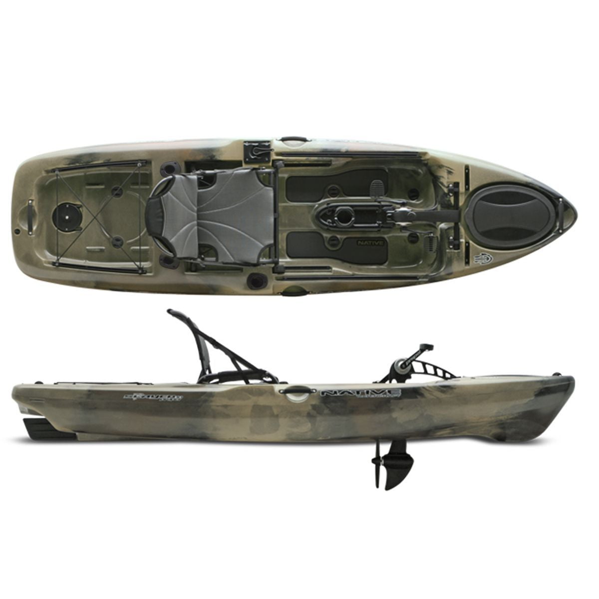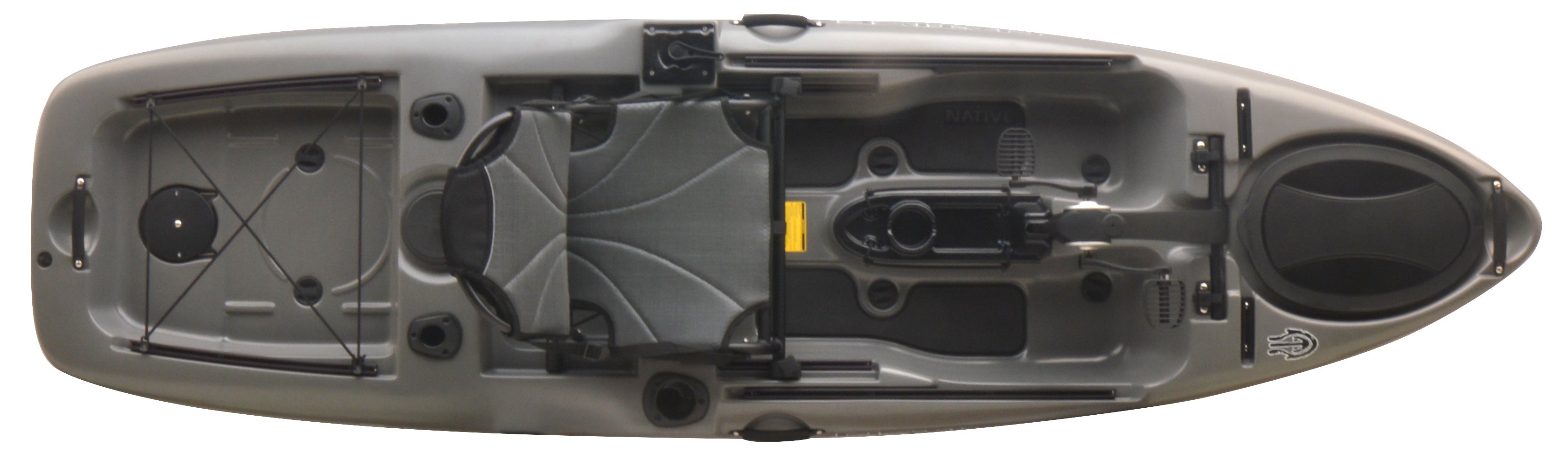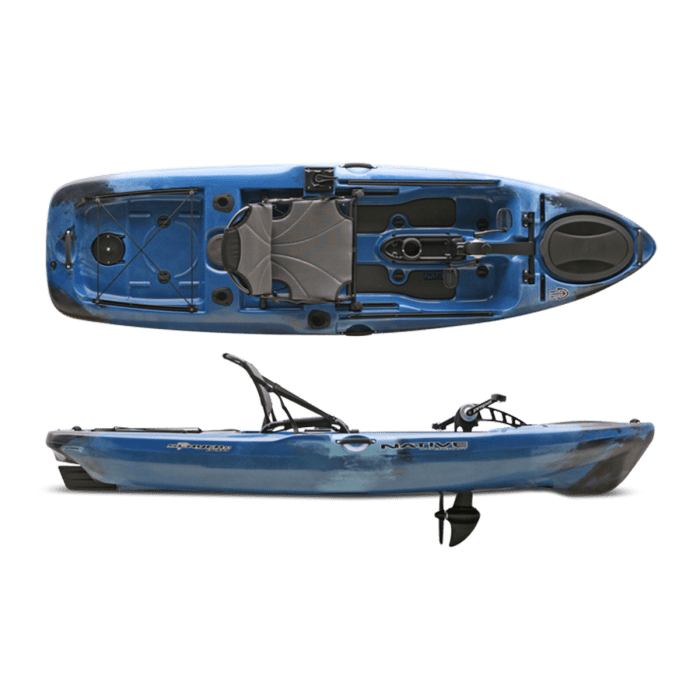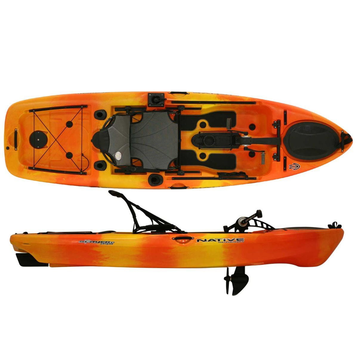 Weighing in at only 59 pounds (without the drive unit) the Native Watercraft Slayer Propel 10 is the lightest pedal drive fishing kayak on the market. Light enough to lift car top or effortlessly slide into the back of a pickup, this little titan is the master of hands free fishing. Powered by Native's unique Propel Drive System which boasts forward and reverse, the Slayer Propel 10 keeps you on the fish and provides a major aid landing the catch of the day. Armchair-comfortable seat, rock-solid stability, clutter-free cockpit; the design empowers even the XXL angler to stand and sight-cast or to just relax and sip a beverage. Propel speeds vary depending on currents and wind, but pedaling 3.5 miles-per-hour all day long smooth and easy. Bow to stern rail mount system means easy on-and-off for rod holders from major brands like Scotty, RailBlaza, and purposely-positioned rails for mounting cameras to capture your trophy catch.